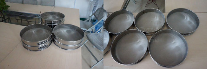標(biāo)準(zhǔn)篩測定物料粒度組成所使用的一套標(biāo)準(zhǔn)篩具。是篩析的主要工 具。它是由一套篩孔尺寸大小有一定比例的、篩孔寬度和篩絲直徑都按標(biāo)準(zhǔn)制造的直徑為200mm的若干層圓形篩子所組成。有蓋和底,可手工操作也安裝在機(jī)上進(jìn)行篩分。只要知道篩比和基篩這兩個參數(shù),就可以算出該系列標(biāo)準(zhǔn)套篩的各個篩子的篩孔尺寸。根據(jù)篩比和基篩篩孔尺寸的不同,分成各種標(biāo)準(zhǔn)篩制。